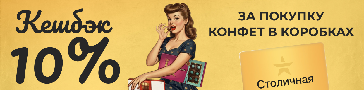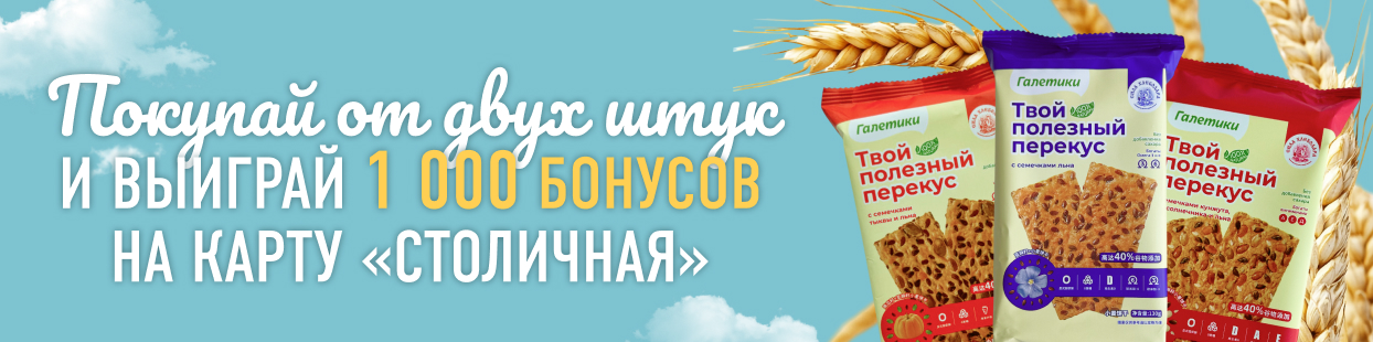 Бонусы начисляются на вашу карту «Столичная» за покупки в магазинах «Столичный», «Фабрика вкуса», «Гильдия», «Сахмаркет», «Аллея маркет».