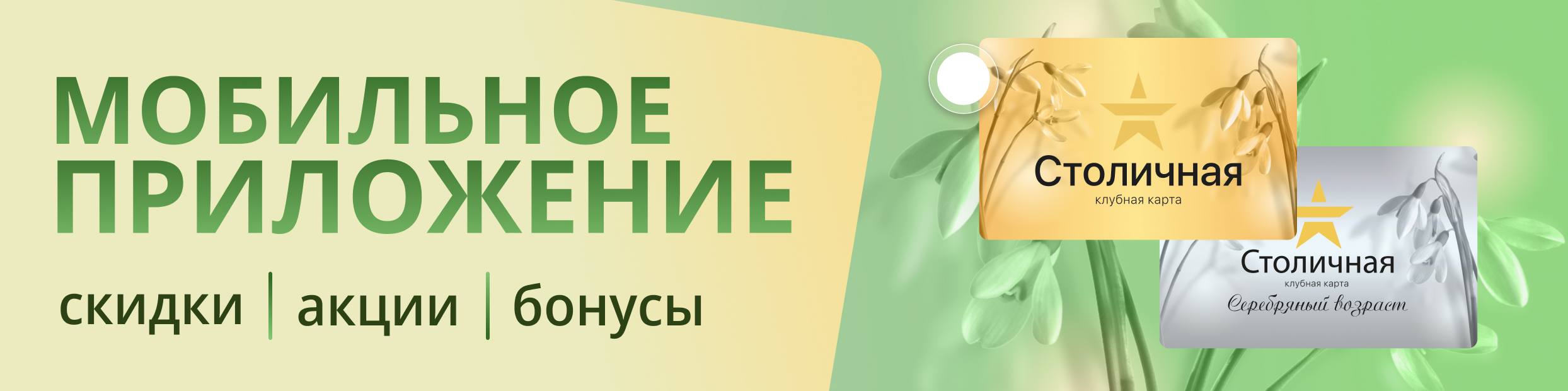 Пользуйтесь физической или виртуальной картой в мобильном приложении «Столичная» для начисления и списания бонусов, а также применения скидки по карте «Столичная».
