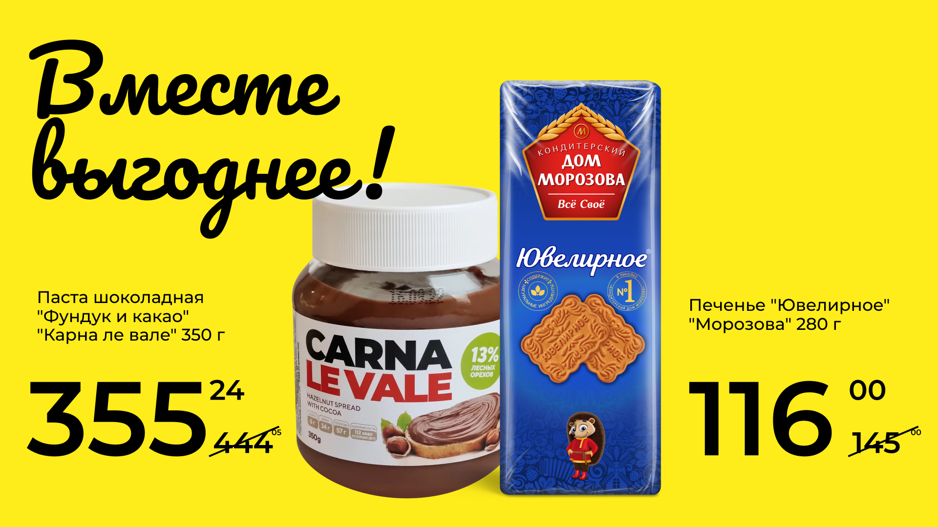 Большой выбор товаров со скидками до 50% в магазинах «Столичный», «Фабрика вкуса», «Сахмаркет», «Аллея маркет». Такие товары выделены на полках специальными указателями «Цена по карте».